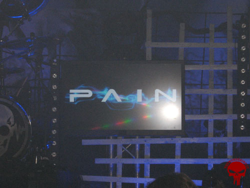 Tocca ai Pain, e si inizia a far i seri! Prima cosa: il palco si amplia, si vede una scenografia con 4 schermi e varie luci, fino ad adesso nascosta da teli; seconda cosa: dalla prima nota si sente un suono pieno e potente, tutti gli strumenti sono nitidi e definiti! Fantastico! I Pain sotto la direzione del buon Peter, sono ottimi e esperti musicisti, pescano a piene mani da tutta la loro discografia scegliendo brani pieni di groove e facendo muovere la testa a tutto l'UFO. Si fermano brevemente tra un pezzo, solo per incitare il pubblico, mantenendo sempre il concerto ad un ritmo molto elevato. I brani, che da CD sembrerebbero anche adatti per una discoteca alternativa, acquistano un tiro devastante, tipico di un concerto Metal. La batteria, forse per i suoni , forse per il bravissimo batterista, o forse per la bravura di Tägtgren nel comporre i brani, è "il qualcosa in più" che rende travolgenti i PAIN dal vivo.
